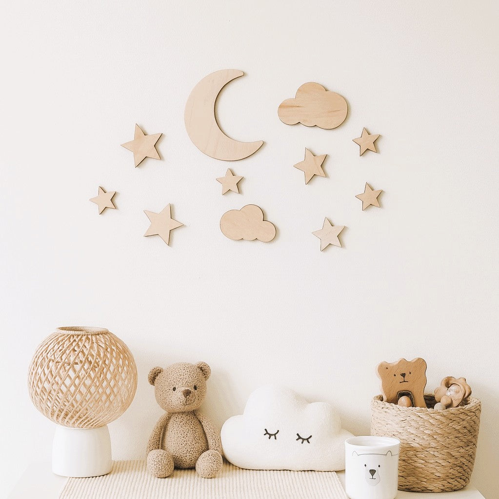 Zestaw gwiazdki, chmurki, księżyc